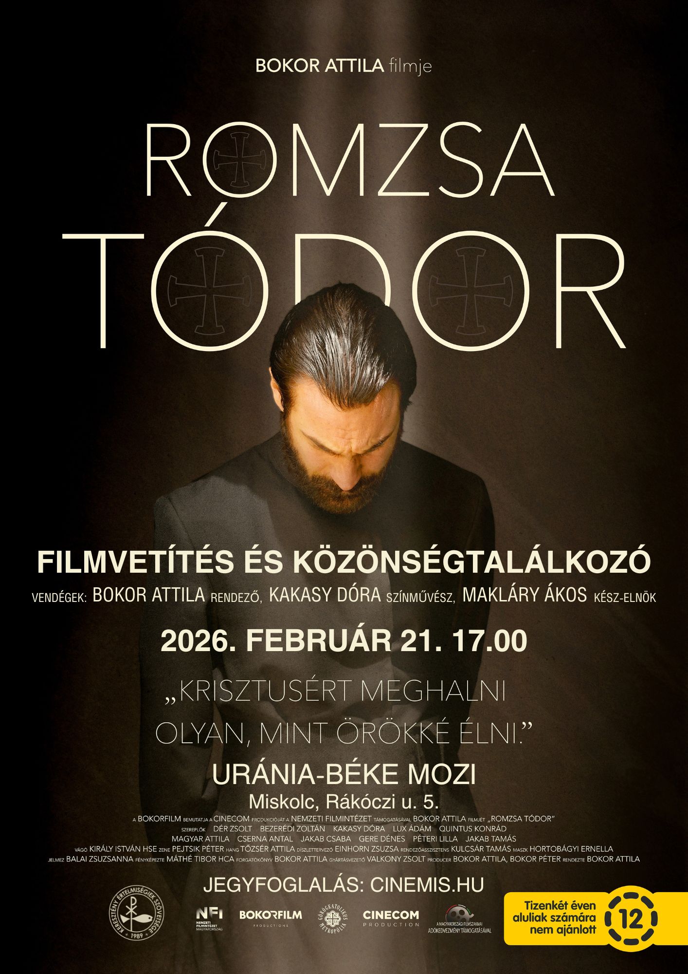 Miskolcon az Uránia-Béke Moziban (Rákóczi u. 5.) kerül sor a Romzsa Tódor c. film vetítésére február 21-én, szombaton 17 órakor. Jegyek a helyszínen a mozi jegypénztárában vásárolhatók 1250 forintos áron. Online jegyfoglalás hamarosan.