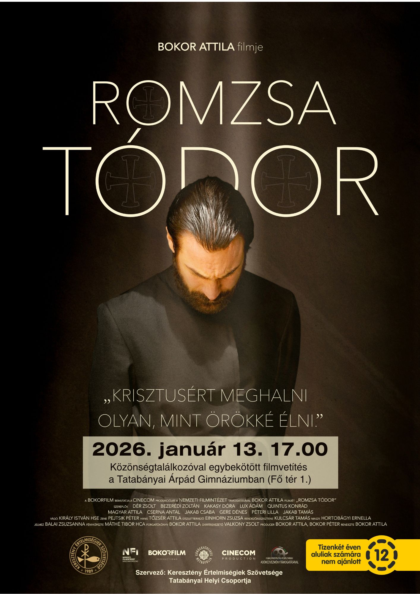 A KÉSZ tatabányai csoportjának szervezésében kerül sor a Romzsa Tódor c. film premier előtti vetítésére a Tatabányai Árpád Gimnáziumban január 13-án, kedden 17 órakor. A részvétellel kapcsolatos információk hamarosan!