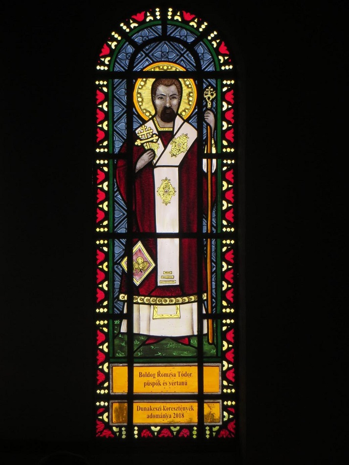 Ez alakommal a dunakeszi keresztény közösség egy Boldog Romzsa Tódor püspököt ábrázoló vitrázst (vitrázs: festett üvegablak) vitt magával, mely ünnepi szentmisén került felszentelésre.